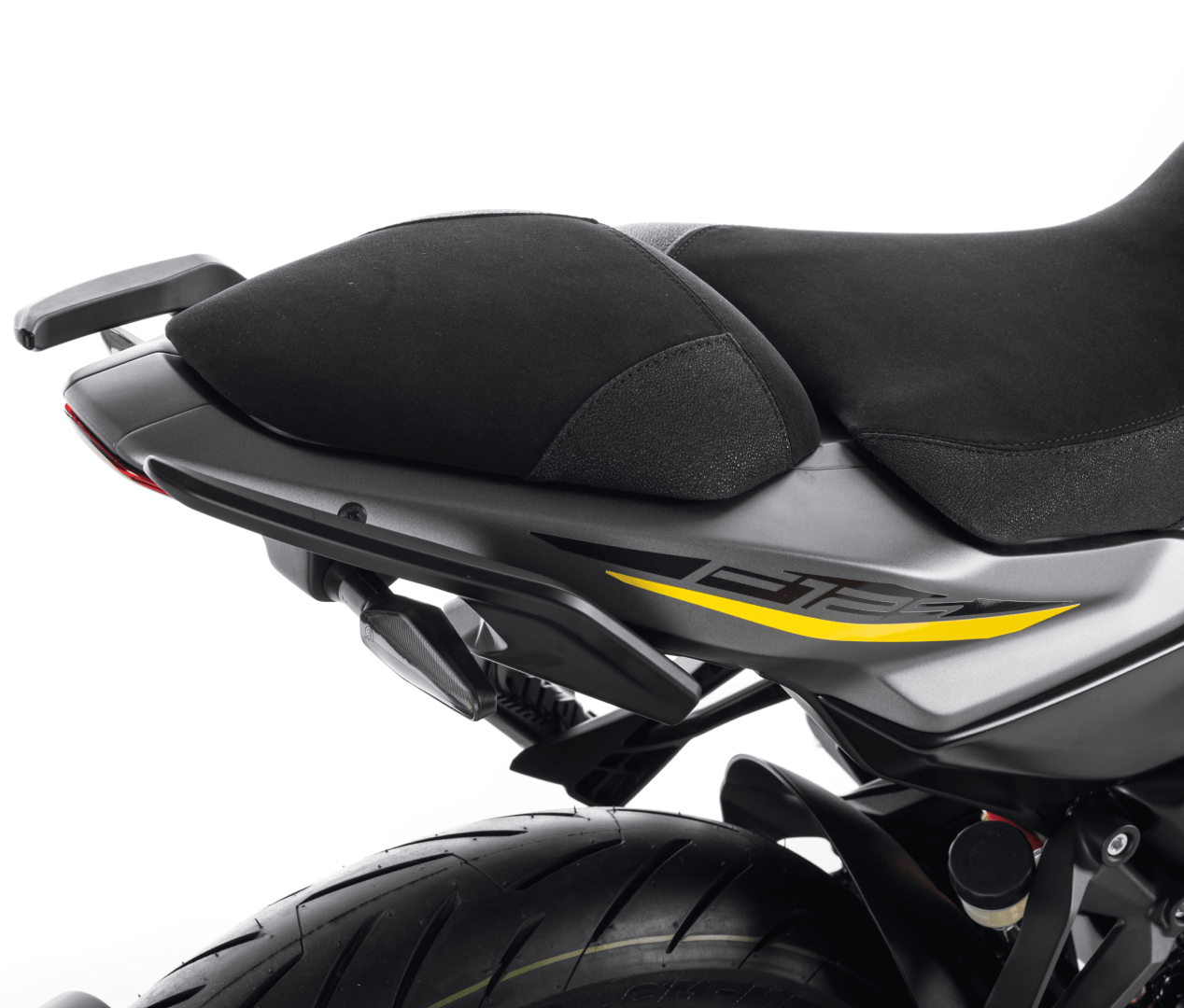 Nie mogło też zabraknąć pełnego oświetlenia LED. Agresywny wygląd lampy będzie się podobał młodszemu pokoleniu kierowców. Motocykl jest też na tyle wąski że, świetnie będzie się przeciskał między samochodami w korkach co ułatwią również schowane pod kierownicą lusterka.