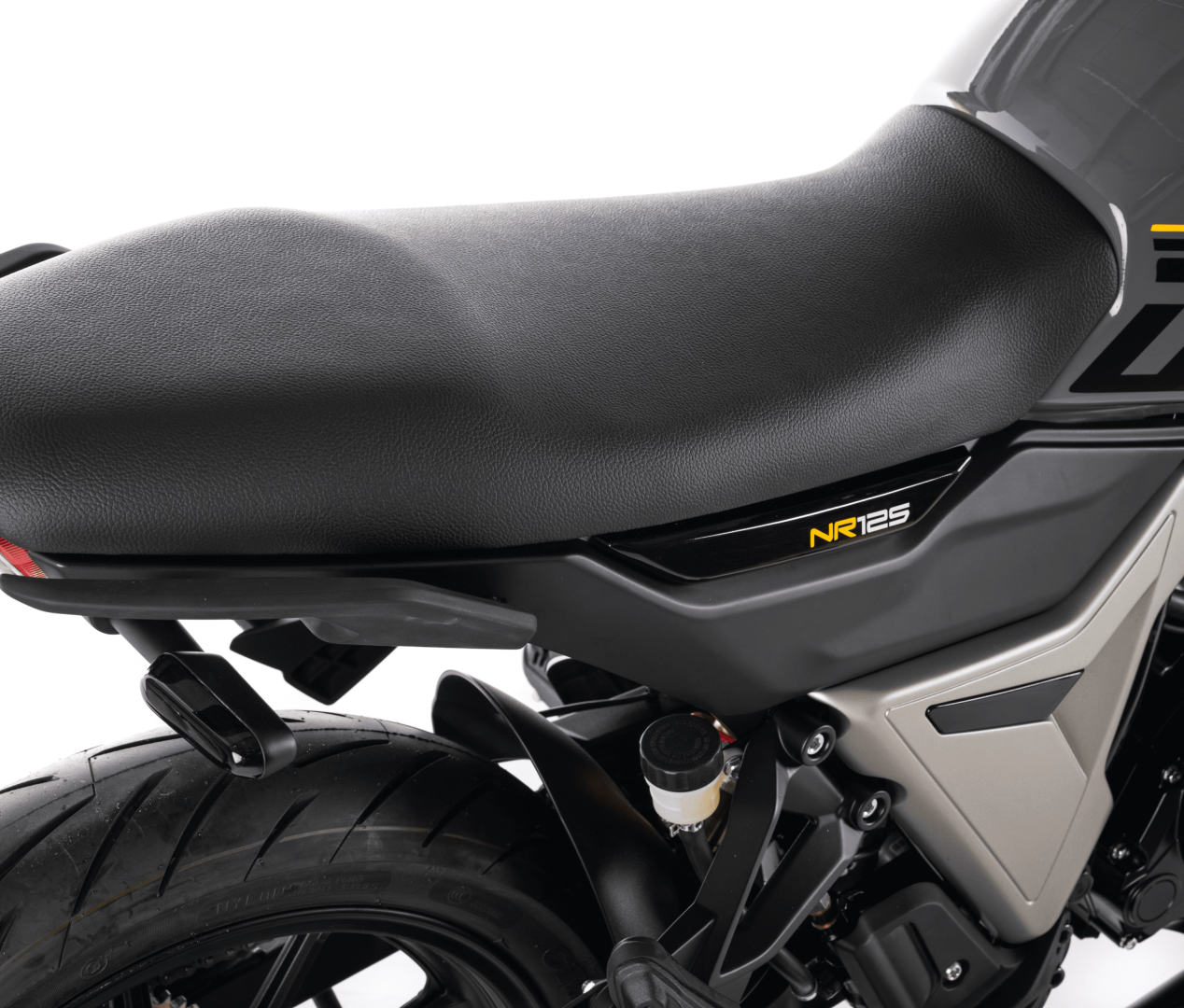 Opisywany model NR125 – to motocykl z popularnej w dzisiejszych czasach klasy neo-retro. Wyglądem nawiązuje do linii klasycznych motocykli, ale technicznie znajduje się w XXI wieku. Na uwagę zasługuje zawieszenie przednie typu up-side down. Zawieszenie tego typu, dużo lepiej niż tradycyjne, niweluje nierówności drogi. Poprzez obrócenie widelca osiąga się mniejszą masę koła, przez co amortyzator szybciej reaguje na nierówności. Z tyłu mamy amortyzator typu monoshock – takie rozwiązanie zapewnia dobrą stabilność w zakrętach.