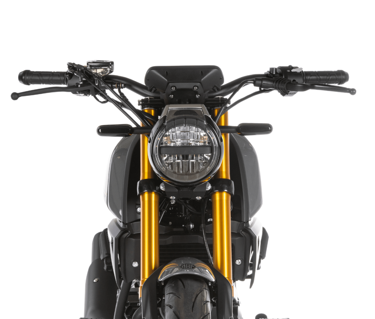 Przednia lampa w okrągłym kształcie nawiązuje do klasycznych motocykli, jednak zawiera „obrysówki” do jazdy dziennej, jak również nie zawiera już żarówki. W motocyklu mamy pełne oświetlenie LED, łącznie z kierunkowskazami. Małym detalem stylistycznym, ale jakże pięknym, jest przezroczysty zbiornik płynu hamulcowego na kierownicy.