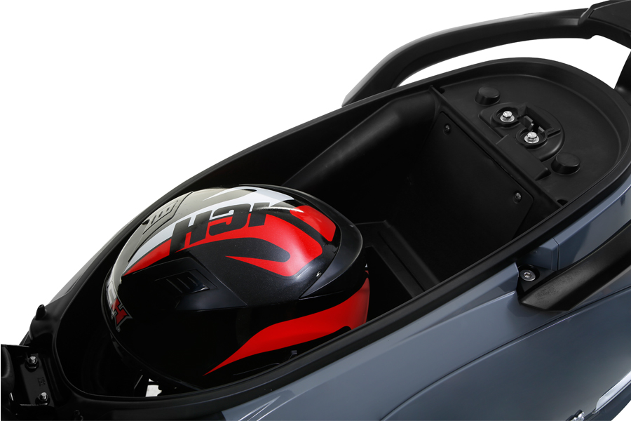 Schowek pod siedzeniem o objętości 21 litrów zmieści może kask typu JET i nic więcej. Producent jednak, świadom małego bagażnika, w seryjnym wyposażeniu dodaje markowy kufer Shad.