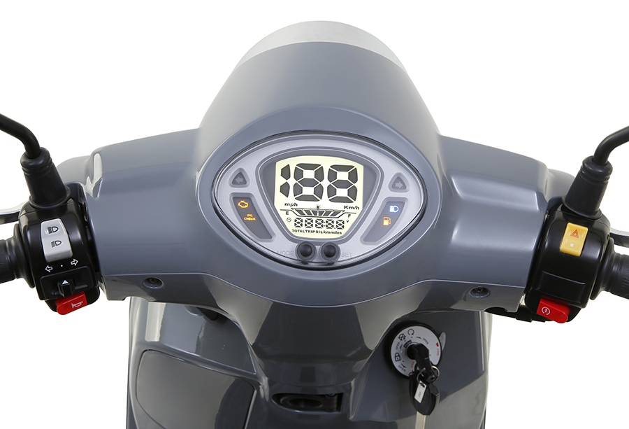 Jeśli pojazd ma być stylowy, to i wyświetlacz nie może być zbyt ekstrawagancko. Myślę że styliści SYMa, trochę musieli się natrudzić, zanim pomieścili potrzebne informacje w owalnym kształcie licznika. Nie mamy tutaj wodotrysków typu nawigacjz sparowana z telefonem, mamy za to port ładowania USB 2.0. Mamy też bak umieszczony pod stopami kierowcy, z wygodnym wlewem pod lewym deklem. Nisko umieszczony bak na paliwo obniża środek ciężkości pojazdu, ułatwiając jego prowadzenie.