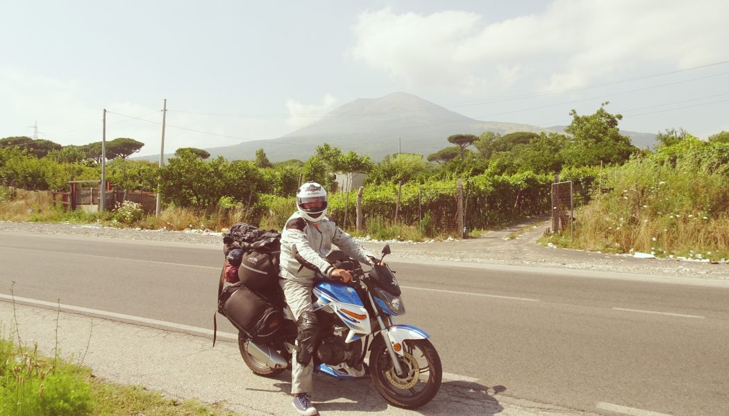 Wieczorem Junakiem wjechałem na prom do Bari, aby ruszyć w kierunku Sycylii. Etna była celem wyprawy, stanąłem na kempingu z widokiem na wulkan, niestety był zaciągnięty chmurami, do późnej nocy czekałem, na moment, aby nacieszyć się widokiem największego czynnego wulkanu w Europie. Dopiero rano, tuż przed wyjazdem Etna na 20 minut odsłoniła swoje oblicze, mogłem wracać. Droga powrotna wiodła przez Neapol, Monte Cassino, nie mogłem sobie odpuścić również Wezuwiusza, który tego dnia kąpał się w słońcu. W Rzymie za zdjęcie zrobione amerykańskiej ambasadzie zostałem otoczony przez Włoskich żołnierzy i musiałem się gęsto tłumaczyć, że ja nie jestem terrorystą tylko turystą motocyklistą.