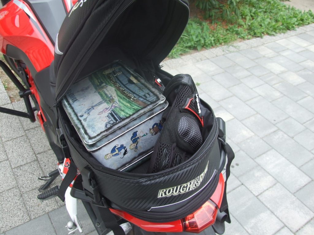 Pierwszym przysłanym towarem jest sakwa motocyklowa na tak zwany „zadupek”, to propozycja dla tych którzy jeżdżą bez pasażera i w których odczuciu kufer w motocyklu szpeci jego wygląd. Popatrzcie tylko jak by wyglądało moje Benelli BN 251 z kufrem Shad, a jak z sakwą na siedzeniu pasażera.