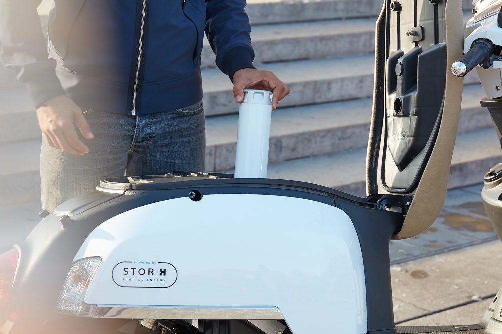 W Polsce doskonale znamy gaz LPG, samochody można nim zatankować na każdej prawie stacji benzynowej. Fakt trwa to nieznacznie dłużej niż tankowanie benzyny, ale czas napełnienia zbiornika na kolejne 400km jest akceptowalny. Gdyby tak można było tankować wodór, i spalać go w silniku to teoretycznie z rury wydechowej kapała by czysta woda. Ale to tak nie działa, owszem są samochody na wodór, ale one za pomocą wodoru generują energię elektryczną napędzająca silniki. Oczywiście produktem ubocznym jest woda. Gdyby ktoś myślał że taka technologia nie sprawdzi się w motocyklu jest w błędzie, motocykle na wodór już są, i uwaga nie będzie się tankować ich na stacjach, tylko wymieniać nabój z gazem pusty na pełny w przydrożnym automacie. Skuter pokazano w Szanghaju w listopadzie 2020 – motocykl nazywa się Mob-ion AM1 powered by STORE-H. Firma Store-h proponuje również urządzenie stacjonarne które napełni nam nabój wodorem gdy tylko podłączymy je do prądu oraz do wody (elektroliza). Jak na razie producent zapewnia bezproblemowe zasilanie silników elektrycznych do 10kW. Samo rozwiązanie jest tak przemyślane aby w łatwy sposób można było zamienić dowolną baterię w pojeździe na baterię wodorową.