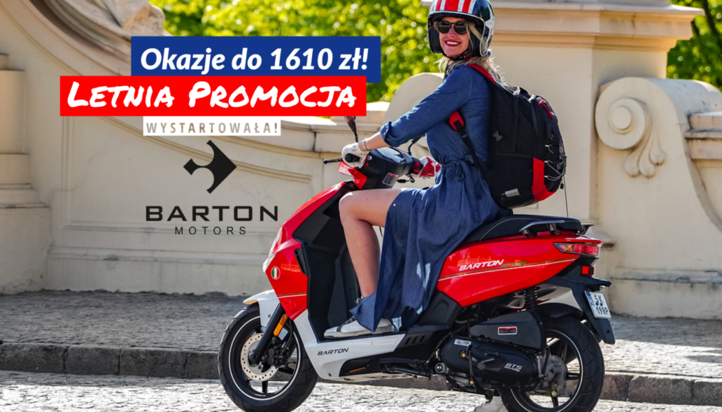 Wychodząc naprzeciw rosnącemu zainteresowaniu takimi pojazdami uruchomiliśmy Letnią Promocję pozwalającą zakupić wybrane modele Barton Motors ze znacznymi zniżkami. Kupując właśnie teraz skuter, motorower, motocykl czy quada z oferty promocyjnej zyskujesz od kilkuset do nawet 1610 złotych. Zaoszczędzone pieniądze możesz przeznaczyć na paliwo, dodatkowe akcesoria lub sfinansować z nich wakacyjny wyjazd.