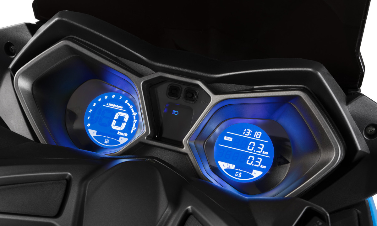 Na uwagę też zasługuje zestaw wskaźników, który oprócz standardowych prędkościomierza i obrotomierza wyświetla również aktualną godzinę, stan paliwa oraz poziom naładowania akumulatora. Można nawet regulować natężenie  oświetlenia przyrządów.