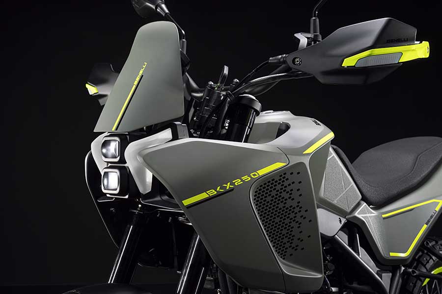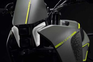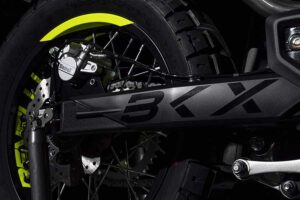 Już na pierwszy rzut oka widać, że konstrukcję przystosowano do jazdy w terenie. Zaczynając od 19 calowego przedniego koła, poprzez 25-cio centymetrowy prześwit, a na handguardach i osłonie silnika kończąc. Duże koło przednie wraz z amortyzatorami up-side-down będzie bardzo dobrze wybierać nierówności terenu. Osłona silnika ochroni go przed błotem i kamieniami wyrzucanymi przez przednie koło a handguardy ochronią nasze ręce przed wiatrem lub gałęziami. Pomyślano również o porcie USB do ładowania telefonu lub nawigacji.