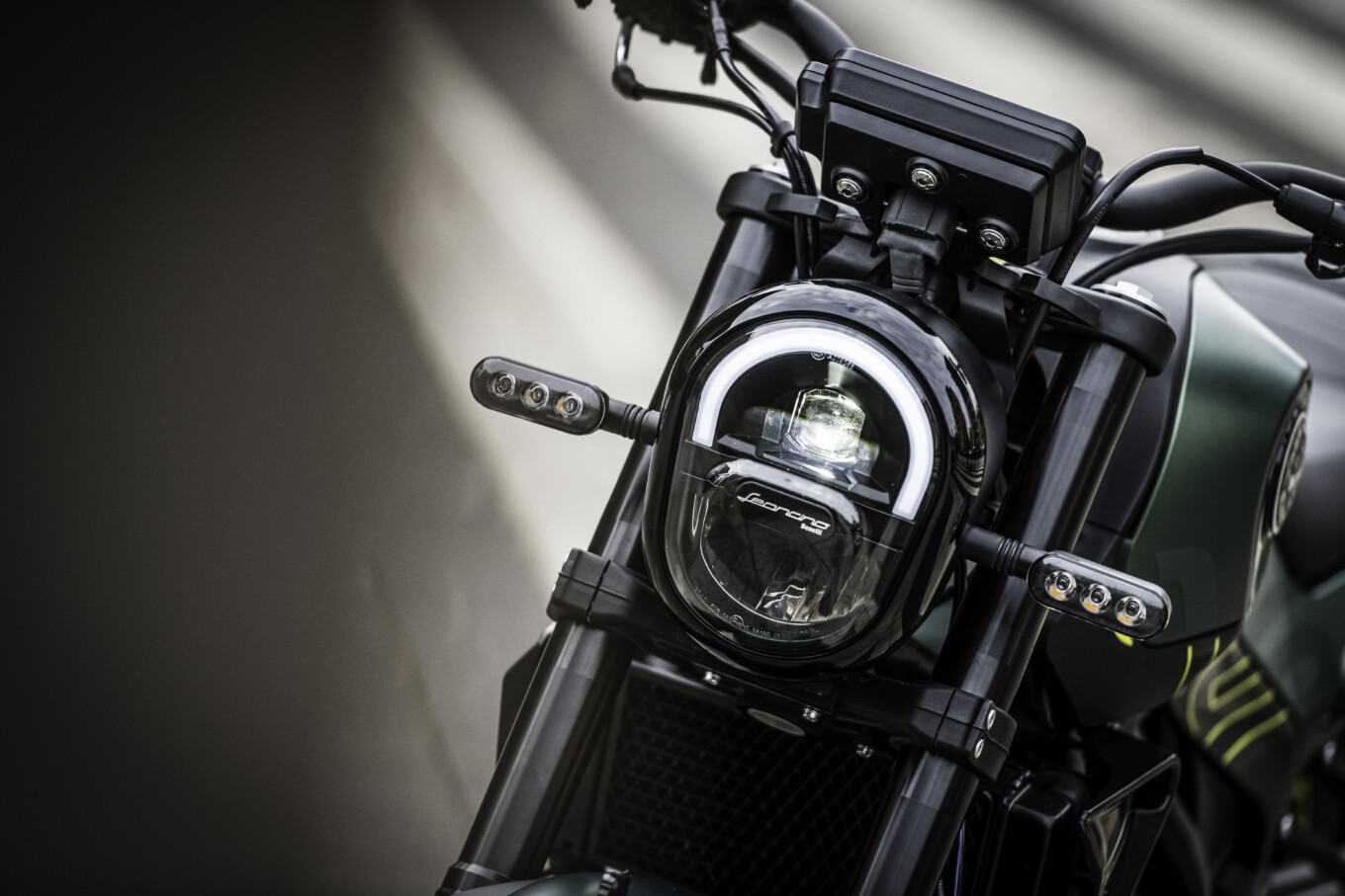 W Leoncino 125 mamy pełne oświetlenie LED. W pełni elektroniczny wyświetlacz, mamy na nim wskaźnik aktualnie zapiętego biegu, prędkość obrotową silnika, wskaźnik temperatury silnika oraz ilość paliwa w baku. Jedyne czego tutaj brakuje to zegarka… Pozostałe informacje takie jak włączony kierunkowskaz czy włączone światła drogowe przekazywane są przez tradycyjne „lampki” zapewne LED. Po prawej stronie wyświetlacza umieszczono przyciski do zmiany ustawień – co niejako utrudnia manipulowanie nimi podczas jazdy. Ta chyba dobrze :-).