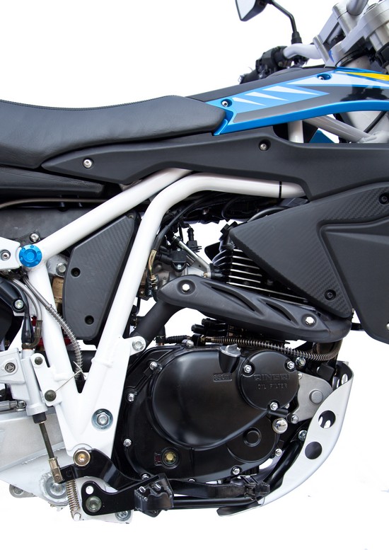 Zgodnie z nową normą EURO IV motocykl posiada już kombinowany układ hamulcowy CBS. Kierujący pojazdem używając jednej z dźwigni hamulca uruchamia hamulce na obu kołach. System ma za zadanie odpowiednio dozować siłę hamowania na oba koła aby zminimalizować ryzyko poślizgu i skutecznie zatrzymać motocykl. Motocykl będzie też oferowany w wersji Supermoto, która różni się od wersji terenowej rozmiarem felg oraz oczywiście zastosowaniem opon szosowych.