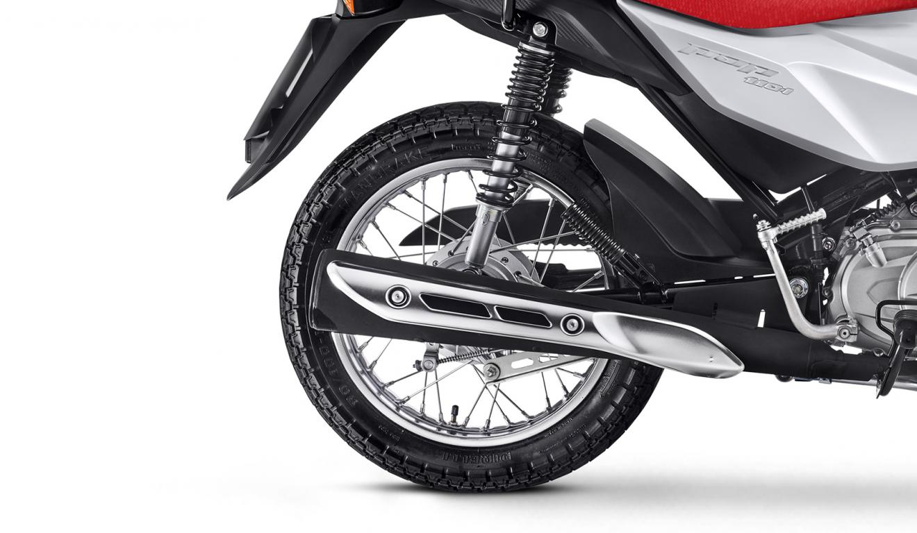 No dobrze, skoro jest tak super to czemu jest taki tani? Przede wszystkim motocykl nie powala mocą, kierowca ma dospozycji 7,9 KM. Zawieszenie oparto na tradycyjnych amortyzatorach, nie ma tutaj mowy o up-side down, czy monoshocku. Honda Pop 110i jest hamowany archaicznymi hamulcami bębnowymi uruchamianymi za pomocą linek (cięgieł). Skoro jest wtrysk, to zapewne producent mógłby łatwo dostosować motocykl do wymogów Uni Europejskiej. Tak samo wyposażenie tego modelu w hamulce tarczowe i układ CBS nie byłoby zbyt kosztowne.