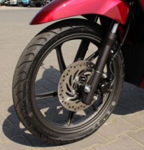 Z przodu zastosowano jedną tarczę o średnicy 220mm i 1-tłoczkowy zacisk. Z tyłu jak na budżetowy model przystało za wytracanie prędkości odpowiada bęben o średnicy 130mm. Niestety próżno tutaj szukać ABS, zastosowano CBS, z którym Honda ma wieloletnie doświadczenie również w starszych motocyklach większej pojemności.