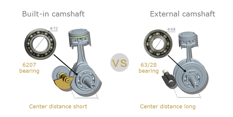 - Wałek wyrownoważający o odmiennej konstrukcji, umożliwiający umieszczenie go bliżej wału korbowego. Taki układ daje nam duże mniejsze wibracje niż standardowy silnik z wałkiem kolonowany z Hondy CG.