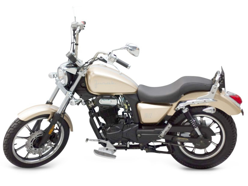 Witam. Chciałem się podzielić moją opinią o Junaku M12. Jestem od 2 miesięcy posiadaczem tego modelu, przejechałem do tej pory 700km i było to naprawdę bardzo przyjemne 700km. Super wygląd, wspaniała pozycja za kierownicą, małe spalanie. Silnik fajnie wchodzi na obroty i śmiało pomyka ponad 90 km/h w każdym razie tiry nas nie wyprzedzają! Wygodnie można też podróżować w 2 dorosłe osoby i motor nie ma ma z tym problemów. Jak dla mnie 180cm i 80kg złoty środek na kategorię B. Trochę może jest za cichy jak na swój wygląd ale nie ma jak wiertło 8 i 4 dodatkowe dziurki w deklu wydechu i od razu miły bas dobiega do naszych uszu. Każdy z kim rozmawiałem na temat mojego M12 myśli że to co najmniej silnik 250ccm, być może przez wygląd, brak prześwitów w silniku a może prze wydech. Ogólnie super cruiser za dobrą cenę no i moja żona odziwo nie boi się nim kierować i daje sobie radę nawet z tym że motor waży prawie 150kg. Szczerze polecam wszystkim!