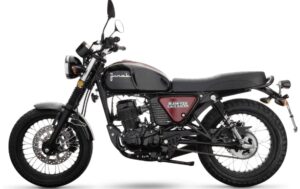 Przeglądając katalog Junaka, mam wrażenie lekkiego deja vu za sprawą modelu Junak RAW 125. Motocykl surowy w nazwie i w wyglądzie ta surowość uderza, zwłaszcza w porównaniu do typowych obecnie standardów podstawowych modeli. Importer oferuje ten model w kolorach czarnym, zielonym, matowych czarnym i szarym (grafitowym), oraz dwubarwnym czarno-czerwonym. Mimo, że ten ostatni brzmi ciekawie, to jednak na mnie największe wrażenie robi szary mat. Napis na bocznym deklu sugeruje, że motocykl ma być pozycjonowany jako Cafe Racer. Wysoka kierownica, podwójna kanapa, kostkowe opony i krótki błotnik, bardziej przypominają mi Scramblera. Wcześniej model RAW występował tylko w pojemości 50cc, cieszy, że dołączył także do grupy motocykli o pojemności 125cc.