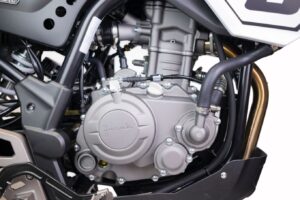 Jednostka napędowa, chłodzona cieczą, generuje pełne 15KM, czyli maks co można mieć aby legalnie jeździć motocyklem na prawie jazdy B, lub kategorii A1. Taka moc przy masie własnej motocykla wynoszącej 149 kg zwiastuje nam naprawdę „wściekły” motocykl. Brytyjczycy twierdzą ze da się nim wyciągnąć 77mil na godzinę, czyli prawie124km/h. I tutaj już widzę banan na twarzy potencjalnych właścicieli. To chyba pierwszy chińczyk w tej klasie pojemnościowej który może tutaj rzucić rękawicę hondzie.