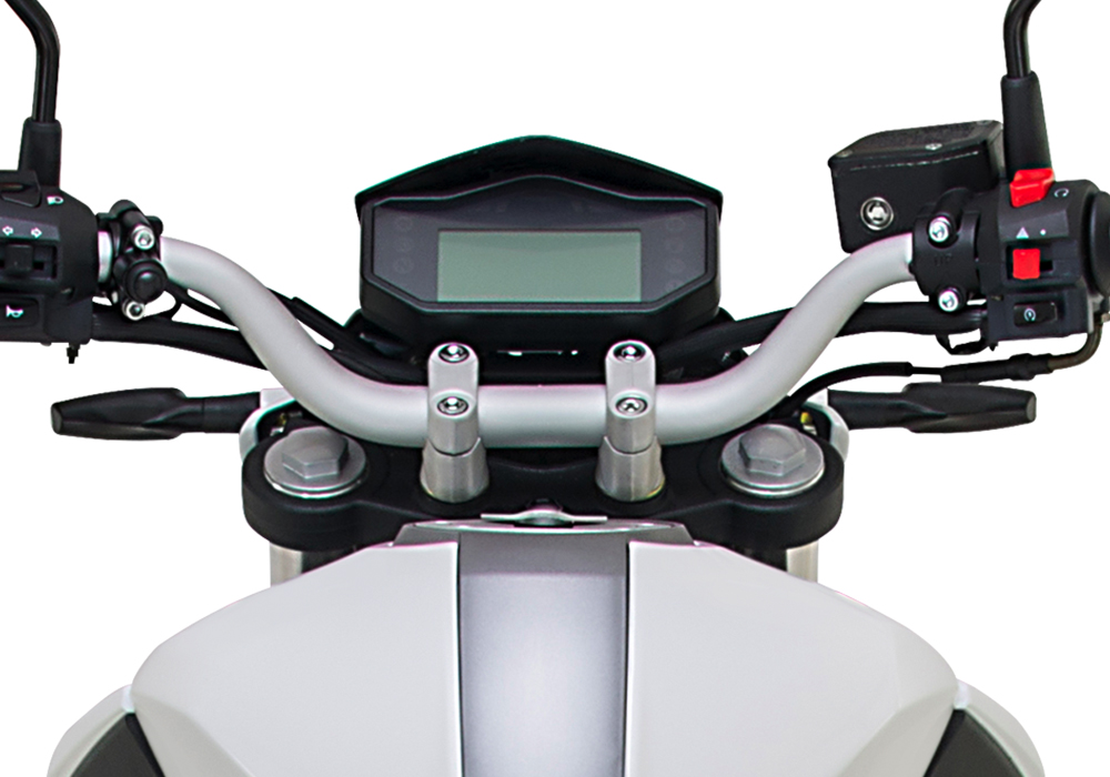 Na koniec powiedzmy coś o designie. Moim zdaniem ten motocykl jest piękny, bardzo zwarty i pozbawiony prześwitów między zbiornikiem a silnikiem. Chociaż ma lampę zerżniętą z KTM’a, wcale mi to nie przeszkadza aby uznać jego styl. Jest piękny i zadziorny a gdy stoi wygląda jak by jechał. Bardzo mi się podoba także chlapacz na tylnym kole. Taka moda teraz :).