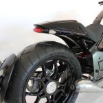 Co tu dużo pisać, motocykl jest piękny, ściąga na siebie uwagę, jest ekscentryczny. O motocyklach tego rodzaju, nie mówi się w kontekście danych technicznych. Nikt się nie zastanawia czy to ma dobre hamulce czy precyzyjną ramę kołyskową. To po prostu ma być na najwyższym poziomie i wygląda na to, że tak właśnie jest. W motocyklach tego pokroju ocenia się smaczki designu. A tych jest cała masa. Można dostrzec np. pojedynczy wahacz. Jest to chyba jedyna 125-tka, która ma coś takiego – wykluczając skutery, które z natury posiadają zintegrowany silnik z kołem. Widzimy też chlapacz wyprowadzony z osi koła, a nie z ramy. Fragment ogromnej opony między zadupkiem a chlapaczem jest odsłonięty. Jest to chyba jedyna 125-tka z oponą o szerokości 210. W przeciwieństwie do Daytony, Pilder otrzymał wahacz i amortyzator monoshock skrzętnie ukryty pod siedzeniem. Poza tym mamy bardzo wąską kierownicę i nisko położone siedzenie. W oko wpada także minimalistyczne oświetlenie tyłu. Aż dziw, że otrzymał europejską homologację, przecież rowery mają większe światło. Do całości jakoś tylko tak nie pasuje mi przednie światło. Jest po prostu zwykłe, normalne.