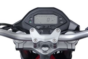 Romet podaje, że motocykl wyposażony jest w kombinowany układ hamulcowy CBS, a na zdjęciach widzimy charakterystyczną dla układu ABS płytkę z otworami, ale to nie oznacza że ten motocykl posiada ABS. 125-tki jak nie mają obowiązku posiadania ABS. W standardzie otrzymujemy też przednie zawieszenie up-side-down pozwalające na lepsze tłumienie nierówności, oraz tylny amortyzator centralny zapewniający stabilność w zakrętach. Zestaw wskaźników także zawiera wiele przydatnych informacji, oprócz gniazda USB, prędkościomierza i obrotomierza mamy tutaj także wskaźnik poziomu paliwa, aktualny czas oraz informację o tym który bieg mamy aktualnie włączony. Ta ostatnia funkcja jest szczególnie przydatna dla początkujących motocyklistów. Świeżakom przypadnie też do gustu skrzynia biegów. Bardzo precyzyjnie wbijają się biegi, a znalezienie luzu nie nastręcza problemów.