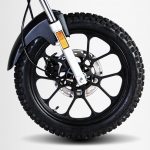 Na pierwszy montaż w tym motocyklu są stosowane opony CST (Cheng Shin Tire) i choć są to jedne z lepszych opon montowanych w Chińczykach, bo na pierwszy montaż używa ich często Honda (model CB125) to w przypadku używania motocykla również na szosie trzeba rozważyć zmianę przynajmniej przedniej opony. Przednia opona jest typowo terenowa czyli tak zwana kostka, nie zapewni nam ona dobrej przyczepności podczas jazdy w deszczu na gładkiej asfaltowej powierzchni za to będzie się pięknie wgryzać w kopny piasek. Tylna opona to opona o bieżniku dual-purpose czyli uniwersalnym, który powinien sprawdzić się w lekkim terenie ale też zapewnić minimum przyczepności na asfalcie. W przedniej lampie znajdziemy już żarówkę halogenową, a przednie kierunkowskazy są wkomponowane w obudowę baku. Dzięki temu przód motocykla zyskuje agresywny i nowoczesny wygląd. Tylna lampa jest rozwiązana klasycznie na standardowej dwuwłókowej żarówce.