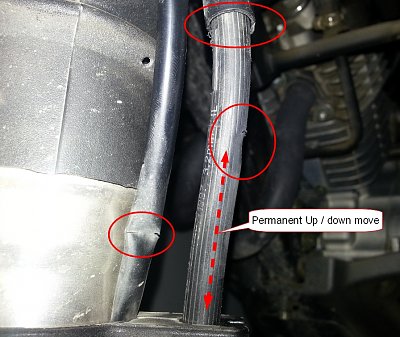 Uszkodzenie przewodu zostało spowodowane błędnym montażem, a że motocykl przyjeżdża do dilera w skrzyni i bez przedniego koła, najpewniej właśnie sprzedający wypuścił taką minę.