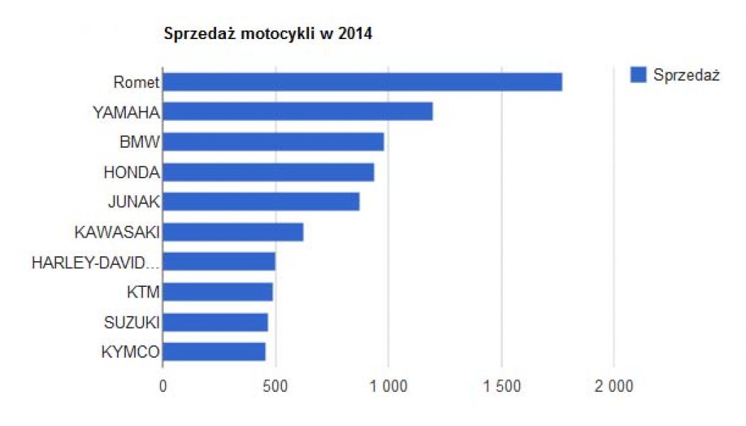 Prezentujemy wyniki sprzedaży motocykli w roku 2014 opublikowane przez Polski Związek Przemysłu Motoryzacyjnego. Romet rozbił bank. Gratulujemy!