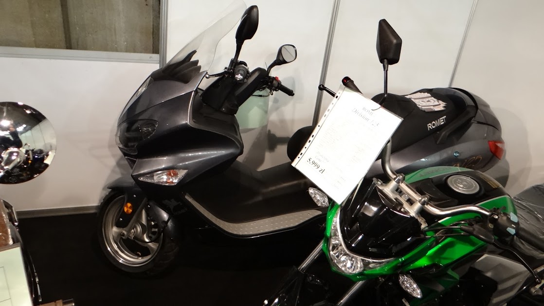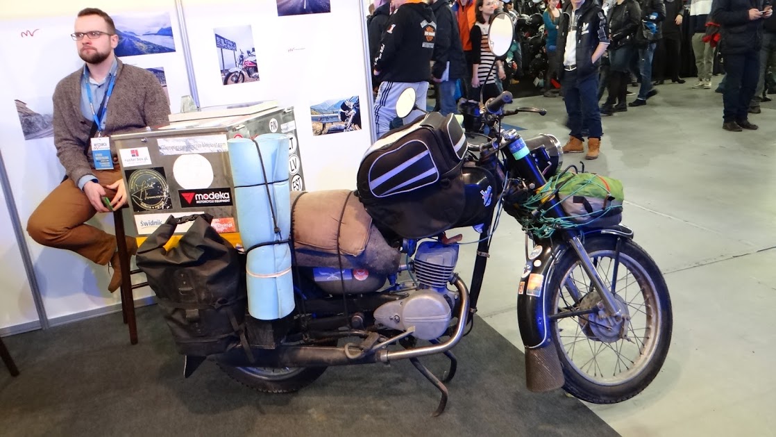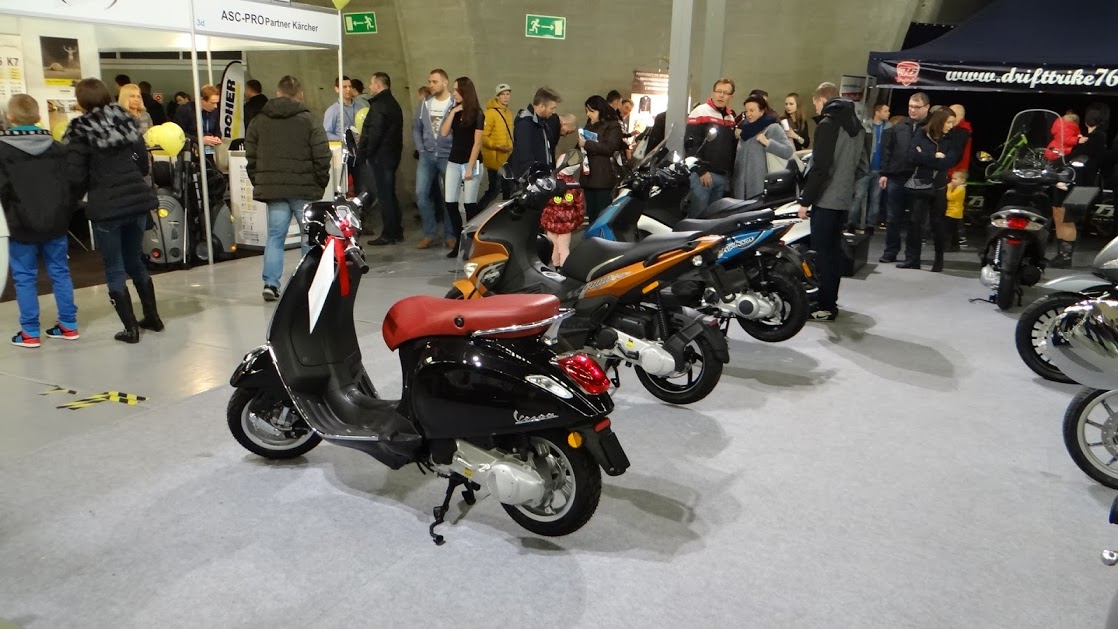 Tak samo jak Dawid zastanawiałem się które targi wybrać, i wybrałem te na które dotrzeć mi było wygodniej. Ot lenistwo… O 12 w południe w niedzielę stałem przed Halą Stulecia we Wrocławiu i oczom nie wierzyłem. Przede mną wiły się trzy kolejki, w każdej po kilkaset osób, dobrze że panie w kasach uwijały się jak pszczoły na kwiatach i kolejka posuwała się całkiem sprawnie. Na terenie tragów motocyklowych wcale nie było luźniej, ludzi było tam jak w mrowisku. Przepychając się miedzy ludźmi często słyszało się ludzi poszukujących Junaka, Rometa, Zippa czy choćby Bartona, niestety ani jedna z tych firm nie wystawiła swoich sprzętów. Honoru Rometu bronił jeden z dealerów , który za własne pieniądze wystawił kilka sprzętów, dzięki niemu mogłem zobaczyć na żywo ADV 250. Na stoisku były też Keeway RKV, Keeway TX, Zipp VZ-3 (chłodzony powietrzem, jakby kto pytał), Romet Division 125, Romet ADV 125.