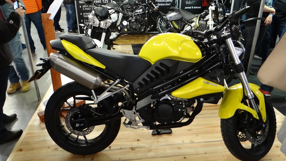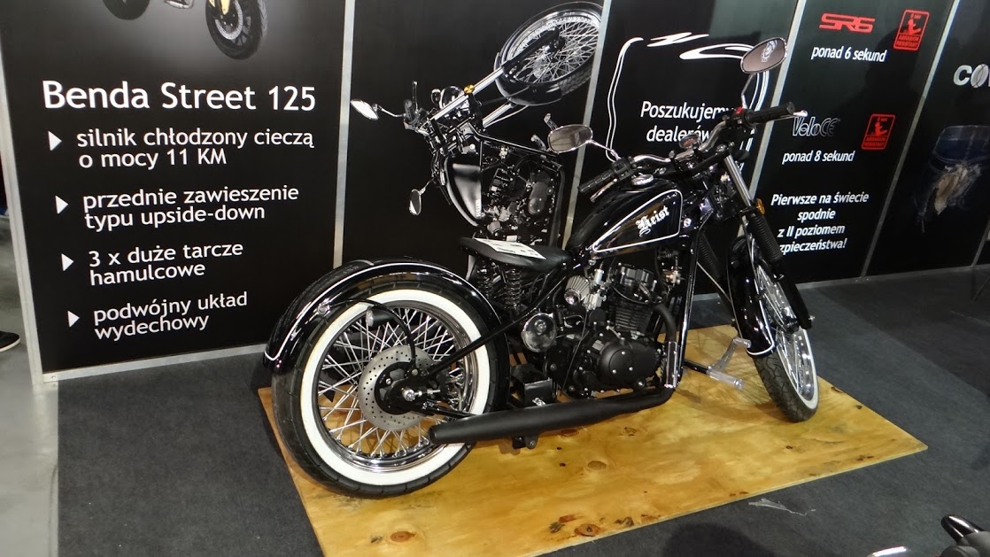 Miałem też okazję porozmawiać z Wojciechem Hause o nowej propozycji Polkomu modelu Benda 125 Street. Motocykl rzeczywiście wygląda na solidnie wykonany, choć błotniki ma plastikowe, ale cóż taki mamy plastikowy świat. Nieoficjalnie dowiedzieliśmy się, że motocykl ma troszeczkę więcej mocy niż podane w homologacji 7,8kW. Dostaliśmy też zapewnienie, że dostaniemy ten model na testy w tym roku, więc sami sprawdzimy czy ten motocykl warty jest 12tyś. zł.